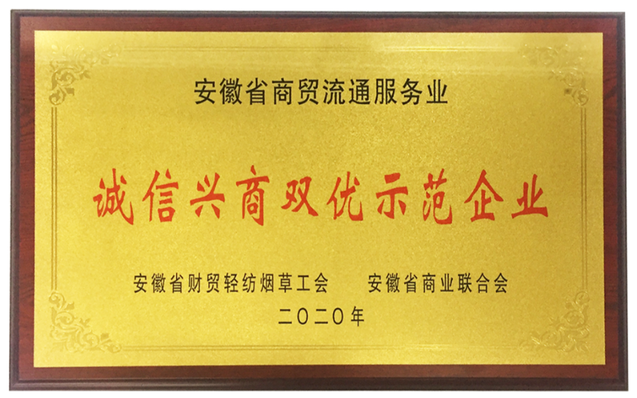 【榮譽(yù)】阜陽(yáng)華聯(lián)集團榮獲2020年省“誠信興商雙優(yōu)示范企業(yè)”稱(chēng)號