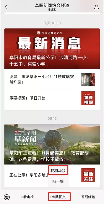 關(guān)注阜陽(yáng)新聞綜合頻道微信公眾號