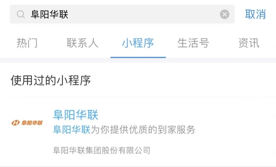 1:打開(kāi)微信/支付寶搜索阜陽(yáng)華聯(lián)小程序