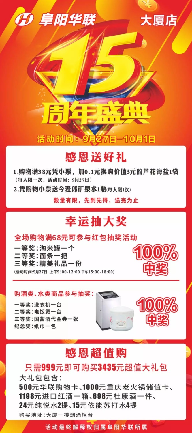 【阜陽(yáng)華聯(lián)】15周年慶驚喜來(lái)襲!感恩您一路相伴