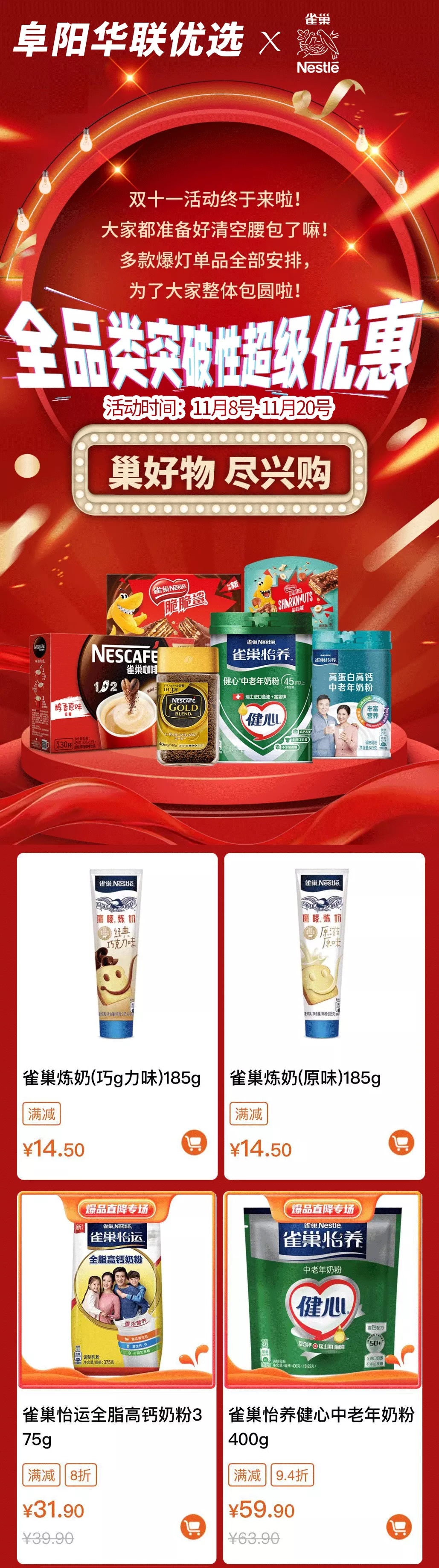 巢好物·盡興購 | 阜陽(yáng)華聯(lián)優(yōu)選雙11全品類(lèi)超級滿(mǎn)減優(yōu)惠!